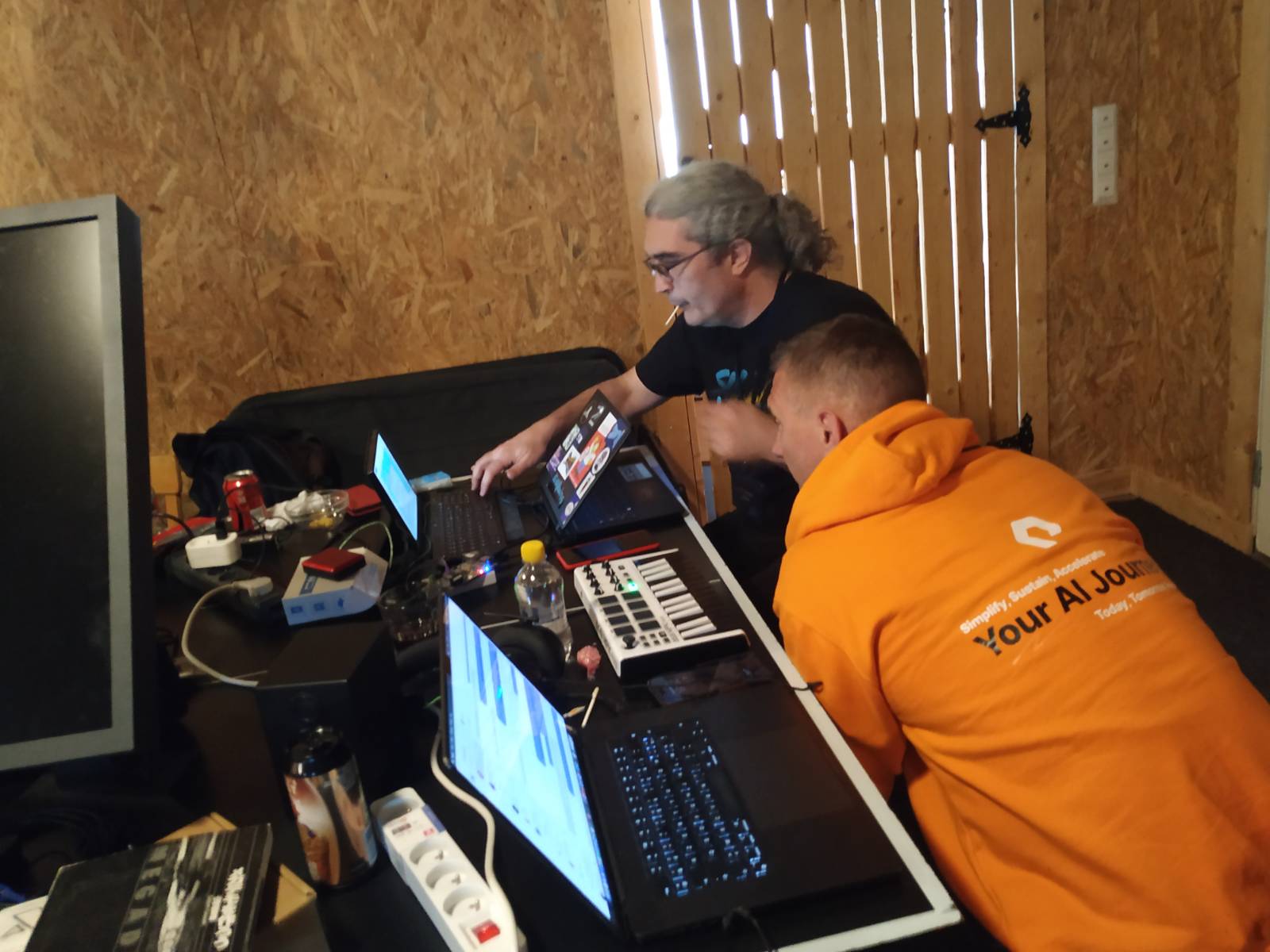 As for the party itself, there was a time table and it was kept without delays. But in practice, people were mostly there to chat, relax, and (why not) even try to be creative. Zerkman demonstrated a new and exciting feature for the zeST project (hopefully will be stable and released soon), Evil was working on a very hush hush (and on the nose) production that unfotrunately was not ready before the competition deadline was reached, and so on.