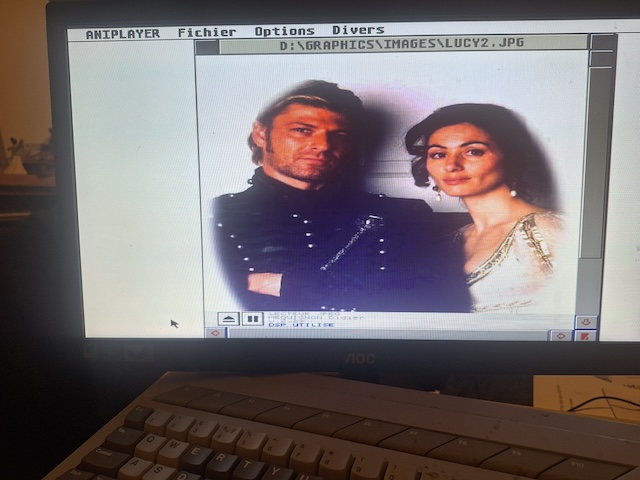 For comparison, here’s a photo I took of the same movie on Aniplayer and Centurbo 2 with the available 640 x 480 Truecolor mode there. This displays comfortably and animates convincingly, but check out the cpu usage! Wheezy or what?