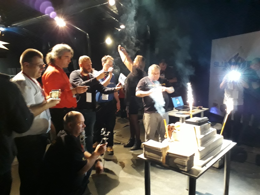 There was a 'surprise' mentioned for this time of the day. This was it. A Coliseum of a cake, a section of the Great Wall of China made into cake, and it was themed for Atari's 45th birthday. It was fresh and creamy and promptly eaten by the ravenous Atari horde.