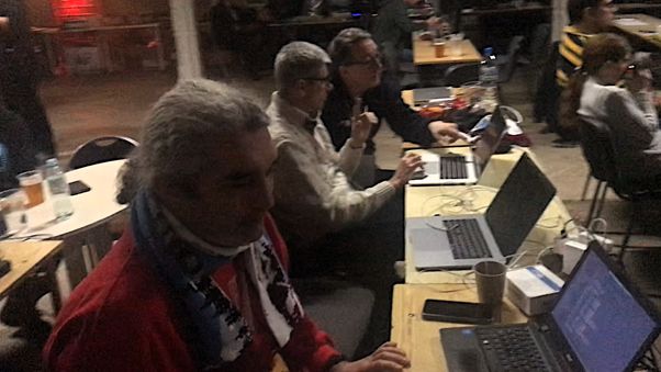 Left to Right: Zerkman developing zeST. Janek and Mr Bee coding sound stuff at SV21WE