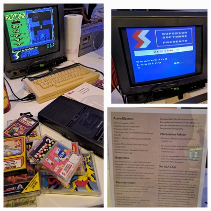 Just as extraordinary, an Acorn Electron was put on display, running games from tape recorder. I was told this computer was supposed to be a cheap kind of BBC micro computer. Seems like software companies like "Superior software" didn't really save the product from being pushed out of the home computer market early.