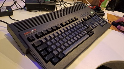 Not far away from the Arcade section you would find this seductive machine - an Amiga 1200 in its CD32 robe. Luckily I know it's owner, so we spent some time inspecting the setup and software available.