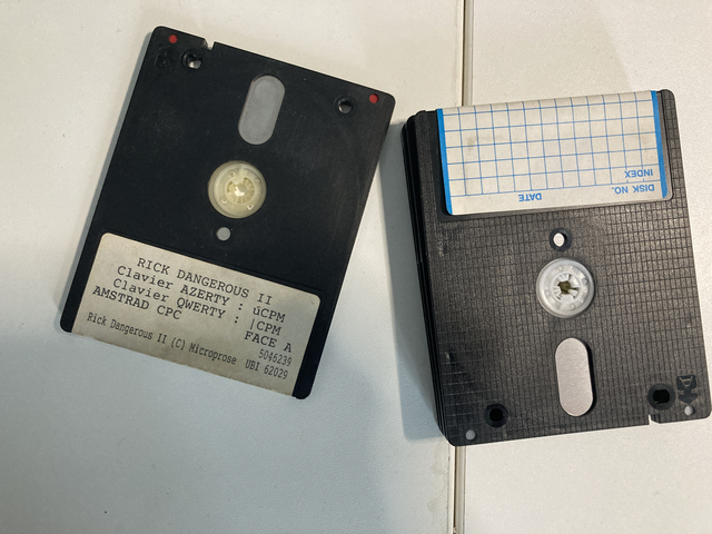 Luckily, the powerbank had shut off, and after investigating everything and using the correct adapter cables, I could load Ricky Dangerous II from 3" floppy on the CPC 6128 to compare it with P0ke playing it on the Atari STe.