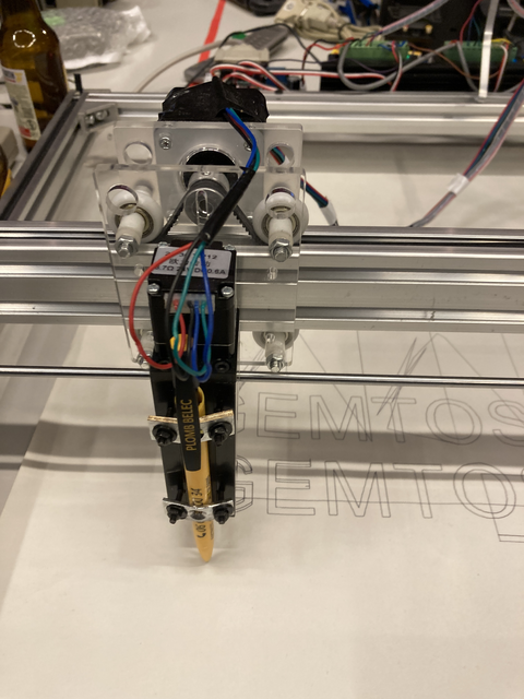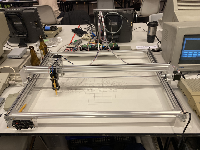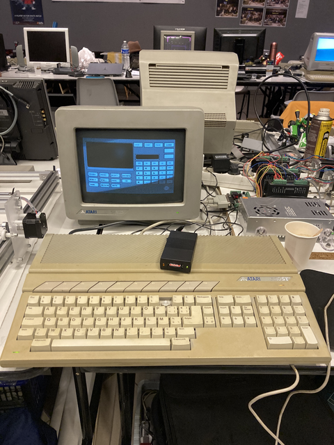 A pen-plotting setup powered by an Atari ST, the hardware controller gets its G-code data by an application running on the Atari ST.
