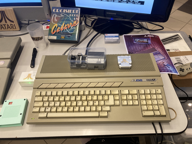 I planned on bringing my 1040STf but since I took out its KAOS TOS ROMs to use in my 520ST+ last year, it didn't have any TOS. And as usual I had ordered TOS 1.04 EPROMS which didn't arrive in time for GEMTOS.