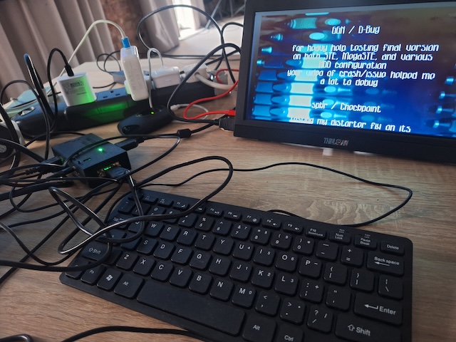 Next to me, Felice is slowly emerging from a tangled undergrowth of cables, he has brought his latest new toy, a MiSTery Nano FPGA ‘Atari STE in a very small box’ to the party.
