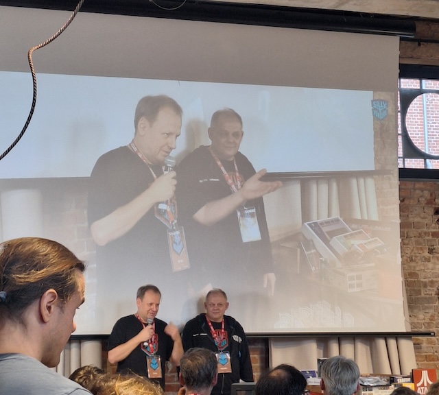 I’ve seen some of the people expected at the party. Zerkman and his spouse/partner, the reassuringly cheery Wiztom was there too. I got a nice photograph of Miker and his spouse/partner Sylwia (not the same Sylwia as Mrs Grey!) David ‘Sives’ Rutherford, who has been at an SV Summer edition or two is here and has made himself known to us. We’ve already seen Samurai (Hagen). The person I’m expecting, indeed hoping to see, but have not found so far, is the maintainer of Atariscne.org himself, 505?